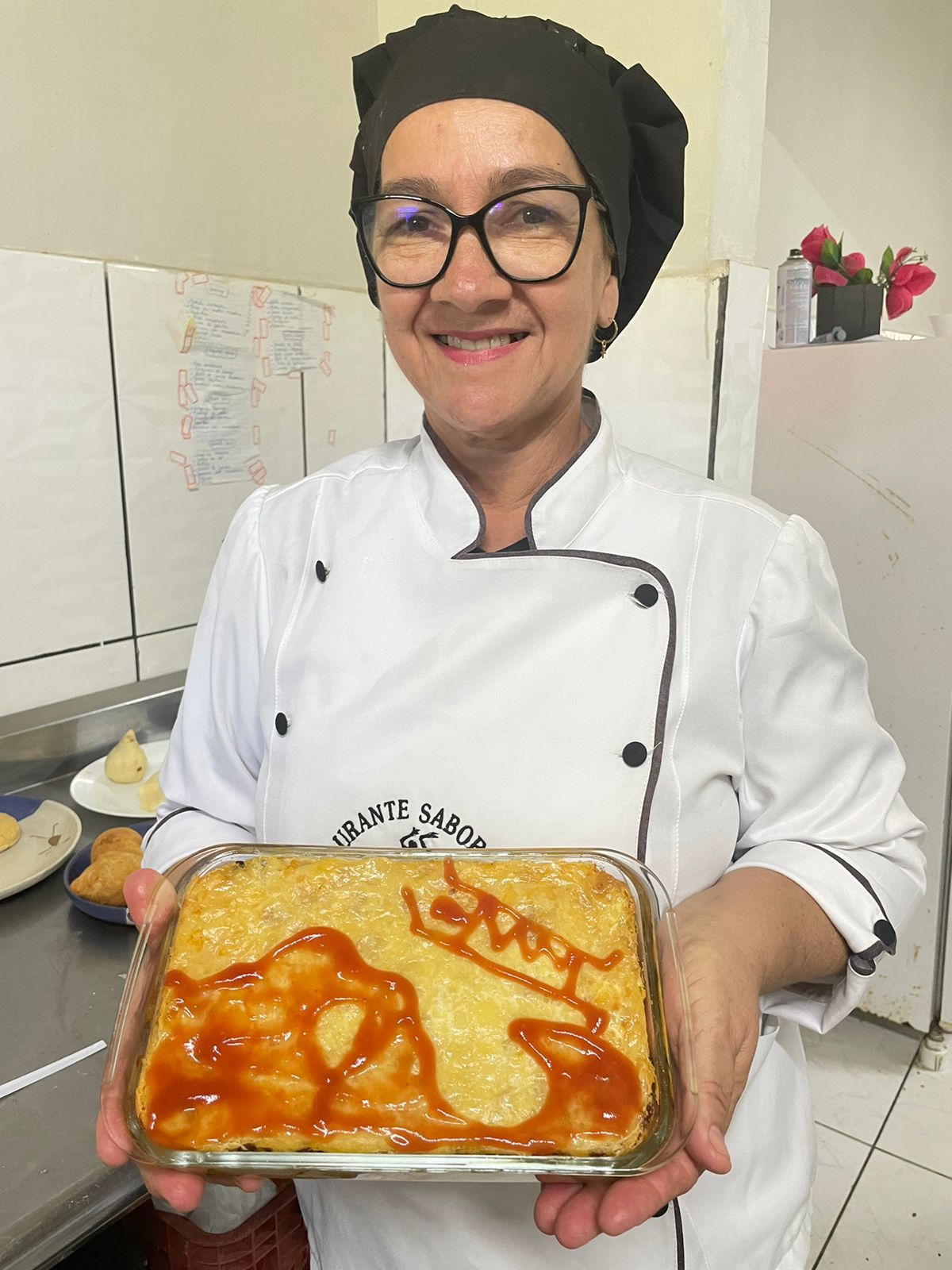 O símbolo do Parque Serra da Capivara na lasanha de frango
