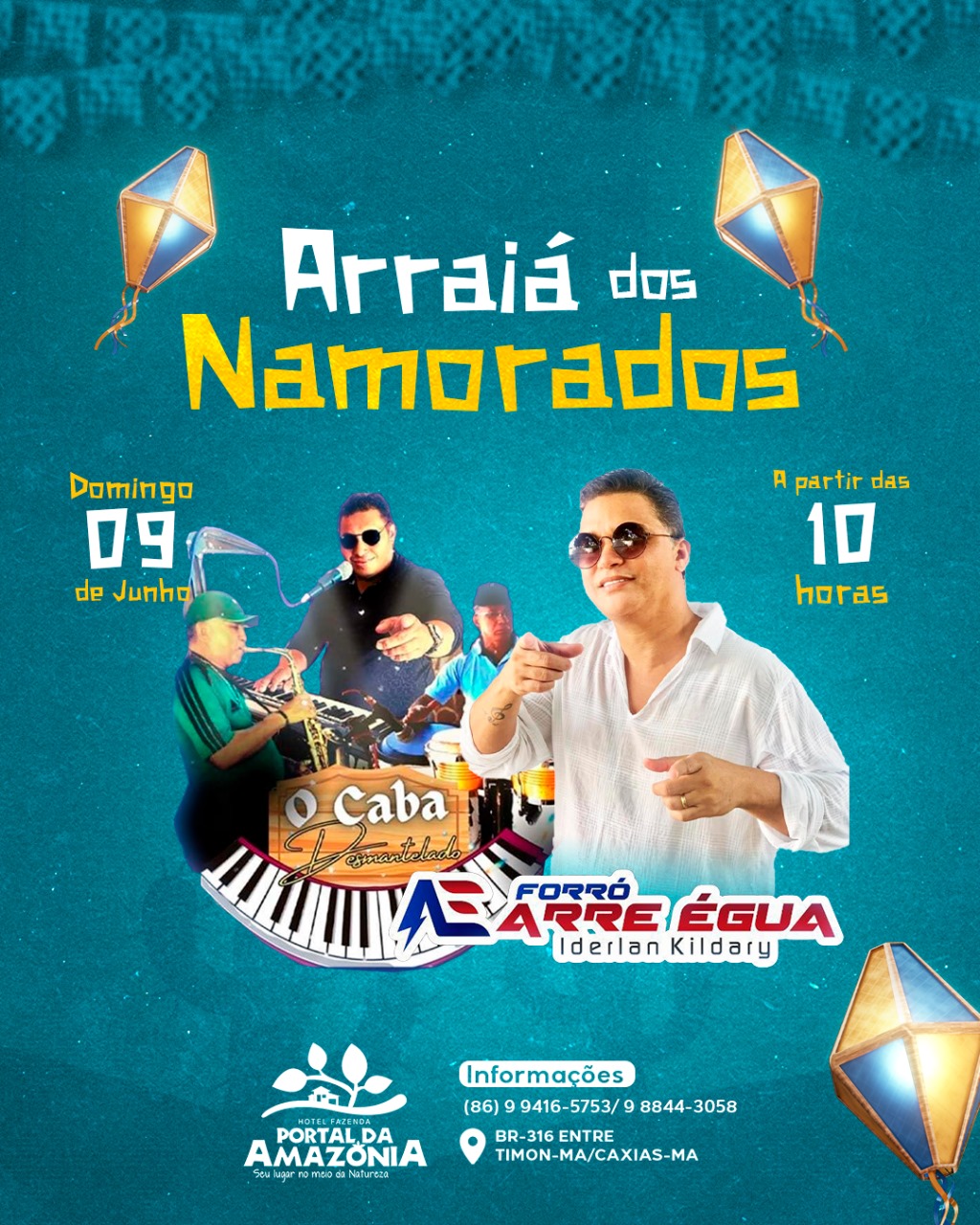 No dia 9 de junho (domingo), a partir das 10h, venha se divertir no nosso Arraiá dos Namorados com O Caba Desmantelado e o Forró Arre Égua com Iderlan Kildary. Será um dia repleto de música, dança e muita animação!