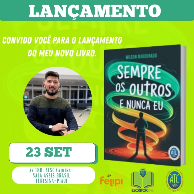 Acontecerá no dia 23 de setembro, às 18hs, durante a Feira da Literatura Piauiense - FELIPI, no SESC Cajuína.