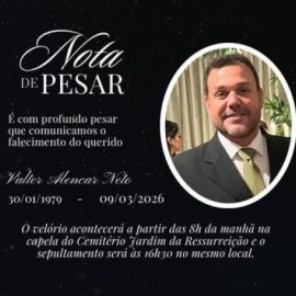 O publicitário e agropecuarista Valter Alencar Neto morreu aos 47 anos, nesta segunda-feira (9), em um hospital de Teresina. Ele estava internado em tratamento contra o câncer.